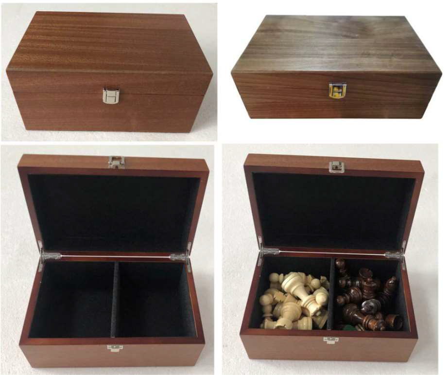 📦 Boîte en bois pour pièces d’échecs – Mahogany & Noyer (25 x 15 x 11 cm)